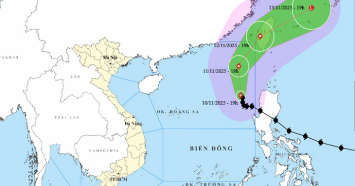Theo Trung tâm Dự báo khí tượng thủy văn quốc gia, lúc 19h ngày 10/11, bão Fung-Wong vẫn duy trì cấp 13, giật cấp 16 và di chuyển theo hướng Bắc Tây Bắc với tốc độ khoảng 10km/h. Trong 24 giờ tiếp theo, bão tiếp tục hoạt động trên vùng biển phía Đông Bắc Biển Đông với cường độ gần như không đổi, gây gió mạnh và sóng lớn trên diện rộng.
