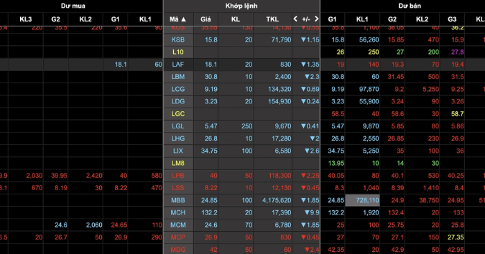 Chứng khoàn Việt Nam - Bảng điện hôm nay chìm trong sắc đỏ và xanh lơ giảm sàn. (Ảnh: Chụp màn hình báo Dân trí)