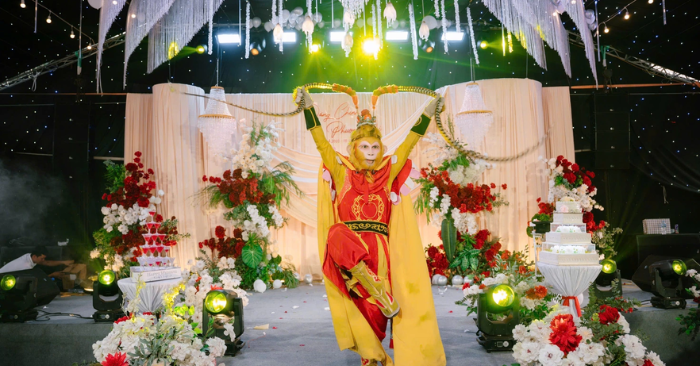 Đám cưới của Hoàng Đăng Chính, 25 tuổi, và Phương Nhi diễn ra vào ngày 6/4 tại huyện Chương Mỹ, Hà Nội, đã thu hút sự chú ý đặc biệt nhờ phong cách rước dâu mới mẻ.Thay vì những nghi lễ truyền thống đơn thuần, đoàn rước có sự tham gia của các nghệ sĩ đi cà kheo, robot và nhân vật Tôn Ngộ Không, di chuyển từ nhà gái về rạp cưới cách đó khoảng 400 mét. Sự xuất hiện bất ngờ của đoàn diễu hành trong trang phục biểu diễn chuyên nghiệp đã khiến nhiều khách mời và người dân địa phương tò mò, thậm chí có người lầm tưởng đây là sản phẩm được tạo ra từ công nghệ trí tuệ nhân tạo.