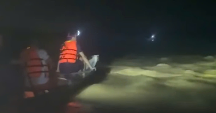 Dù trời tối và nước lũ dâng cao, công tác tìm kiếm vẫn đang được triển khai khẩn trương nhằm sớm tìm thấy nạn nhân.