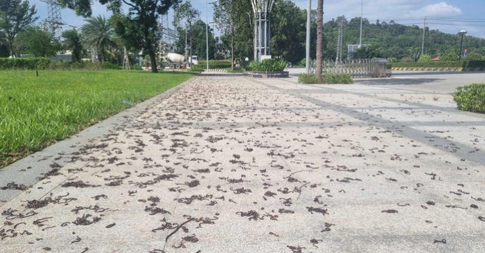 Một khu đô thị tại phường Cẩm Thành (Quảng Ngãi) sáng 14-11 ghi nhận cảnh hàng nghìn con giun bò lên từ mặt đất rồi chết la liệt, khiến cư dân kinh hãi và hoang mang vì chưa từng xảy ra trước đây.