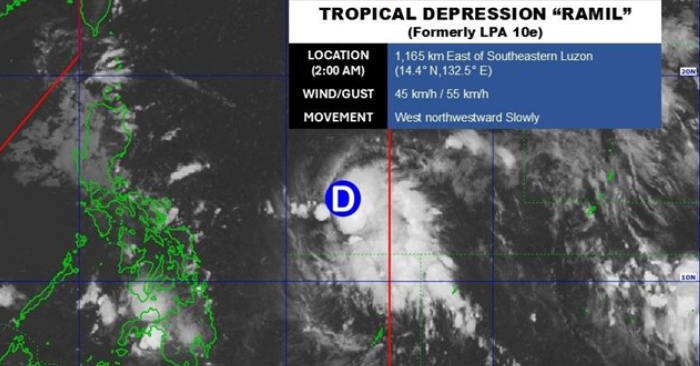 Theo Cục Quản lý Thiên văn, Địa vật lý và Khí tượng Philippines (PAGASA), vùng áp thấp được theo dõi nhiều ngày qua đã mạnh lên thành áp thấp nhiệt đới lúc 2h ngày 17/10, sau khi tiến vào khu vực dự báo của Philippines trưa 16/10. Hệ thống được đặt tên là Ramil, là xoáy thuận nhiệt đới thứ 18 của năm 2025.