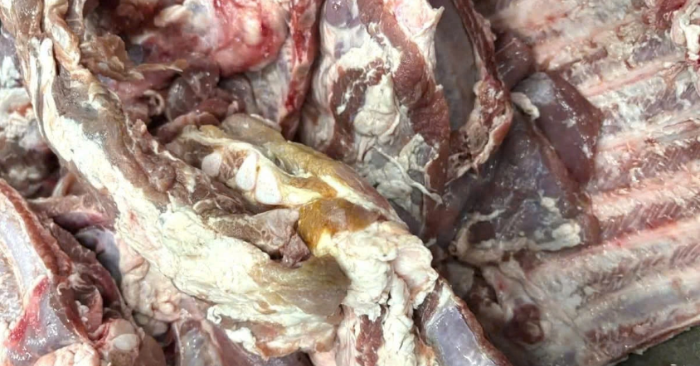 Số thịt heo được cho là không bảo đảm chất lượng đã bị cơ quan chức năng phát hiện trước khi đưa vào các trường học. (Ảnh: Chụp màn hình báo VOV).