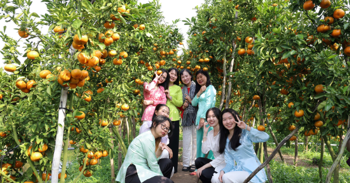 Những ngày gần đây, vườn quýt hồng trở thành điểm check-in được nhiều người tìm đến. Khách chủ yếu là các bạn trẻ, gia đình và du khách trung niên. Mọi người đến để chụp ảnh, tận hưởng không khí mùa xuân sớm.