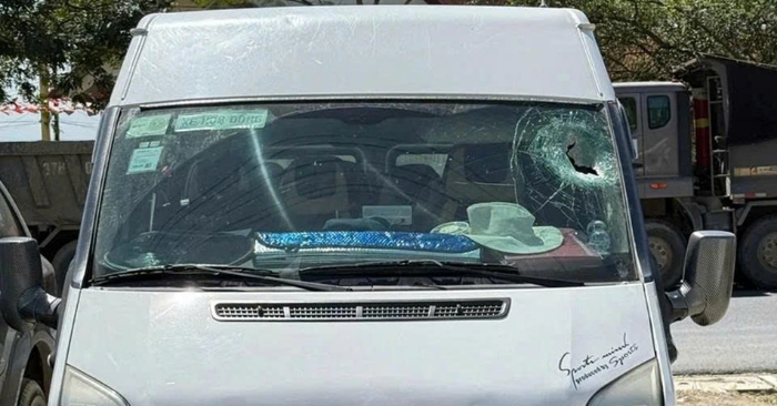 Va chạm mạnh khiến kính trước bị phá vỡ hoàn toàn. Tảng đá lao thẳng vào khoang lái và trúng hai hành khách ngồi ghế phía trước.