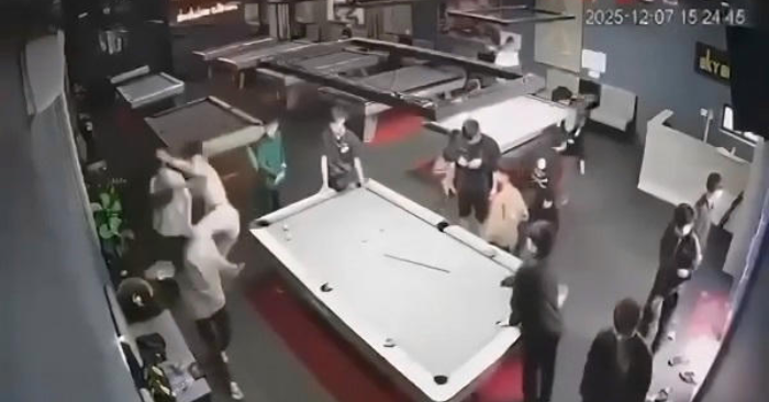 Trong lúc giằng co, một người leo lên bàn bida nhưng mất thăng bằng, ngã xuống sàn và nằm bất động. Vụ việc được xác định xảy ra vào tối 7/12.